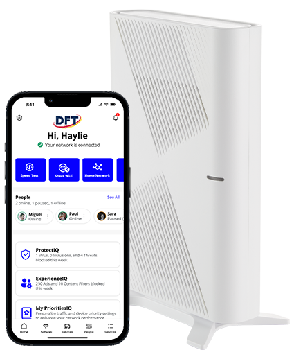 *Pricing effective 01/12/26 and may be subject to change. Certain restrictions and geographic limitations apply. Offer valid to new residential DFT Communications Fiber-optic internet sign-ups only. Requires a 12-month agreement. If the customer cancels their service before the end of the 12-month promotional period, this offer is null and void, and the customer will be billed the difference of the retail price for their services and the promotional rate. Pricing reverts to retail price for the selected plan after 12-month promotional period. This offer cannot be combined with any other offers or promotions. E-billing and Autopay are required, and all related forms must be completed and returned to DFT Communications within 30 days of the customer’s initial installation date in order to qualify. Offer expires as of 12/31/2026, and may be subject to change. Call 716-673-3000 for more information.